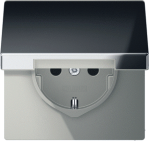 Jung LS RANGE wandcontactdoos (wcd schakelmat.), chroom, uitvoering contactdoos CEE 7/3 (type, 2 actieve contacten (rond), 1 eenheid, 1 fasen, aansluitwijze steekklem, met klapdeksel, met verhoogde aanraakbeveiliging