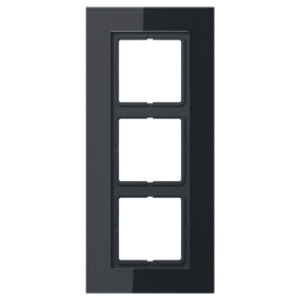 Jung Lsplus afdekraam schakelmateriaal, glas, zwart, (bxhxd) 115x257x11mm, uitvoering oppervlakte glanzend, montagerichting horizontaal en verticaal, geschikt voor wandgoot, 3 eenheden, beschermingsgraad (IP) IP44, 1 eenheden horizontaal, RAL-nummer 9005, kwaliteit glas,