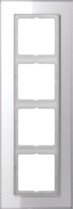 Jung Lsplus afdekraam schakelmateriaal, glas, wit, (bxhxd) 115x328x11mm, uitvoering oppervlakte glanzend, montagerichting horizontaal en verticaal, geschikt voor wandgoot, 4 eenheden, beschermingsgraad (IP) IP44, 1 eenheden horizontaal, RAL-nummer 9016, kwaliteit glas,
