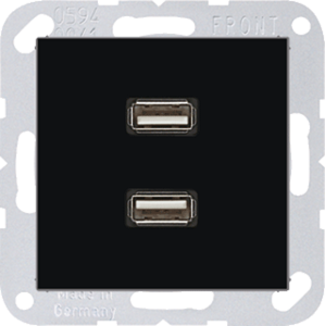 Jung A RANGE multifunctionele verbindingsdoos, zwart, 2 data-aansluitingen, 2 moduleslots, 2 USB aansluitingen, inbouwmontage (stucwerk), RAL-nummer 9005