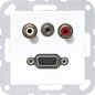 Jung AS500 multifunctionele verbindingsdoos, wit, 1 cinch-audio aansluitingen, 3 data-aansluitingen, 1 jack 3,5 mm aansluitingen, 2 moduleslots, 1 VGA aansluitingen, inbouwmontage (stucwerk), RAL-nummer 1013