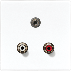 Jung LS RANGE multifunctionele verbindingsdoos, wit, 1 cinch-audio aansluitingen, 2 data-aansluitingen, 1 jack 3,5 mm aansluitingen, 3 moduleslots, inbouwmontage (stucwerk), RAL-nummer 1013