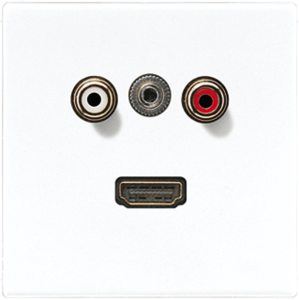 Jung LS RANGE multifunctionele verbindingsdoos, wit, 1 cinch-audio aansluitingen, 3 data-aansluitingen, 1 jack 3,5 mm aansluitingen, 1 moduleslots, inbouwmontage (stucwerk), RAL-nummer 9010