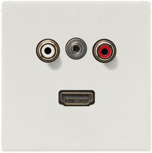 Jung LS RANGE multifunctionele verbindingsdoos, grijs, 1 cinch-audio aansluitingen, 3 data-aansluitingen, 1 jack 3,5 mm aansluitingen, 1 moduleslots, inbouwmontage (stucwerk), RAL-nummer 7035