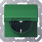 Jung wandcontactdoos (wcd schakelmat.), groen, uitvoering contactdoos CEE 7/3 (type, 2 actieve contacten (rond), 1 eenheid, 1 fasen, aansluitwijze steekklem, met klapdeksel, RAL-nummer 6029