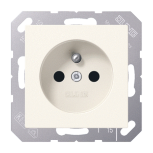 Jung wandcontactdoos (wcd schakelmat.), crème-wit/elektrowit, uitvoering aardingspen, 2 actieve contacten (rond), 1 eenheid, 1 fasen, aansluitwijze steekklem, met verhoogde aanraakbeveiliging, RAL-nummer 1013