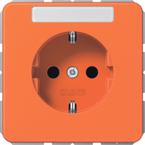 Jung wandcontactdoos (wcd schakelmat.), oranje, uitvoering contactdoos CEE 7/3 (type, 2 actieve contacten (rond), 1 eenheid, 1 fasen, aansluitwijze steekklem, met verhoogde aanraakbeveiliging, tekstveld/beschrijvingsvlak, RAL-nummer 2004