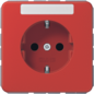 Jung wandcontactdoos (wcd schakelmat.), rood, uitvoering contactdoos CEE 7/3 (type, 2 actieve contacten (rond), 1 eenheid, 1 fasen, aansluitwijze steekklem, met verhoogde aanraakbeveiliging, tekstveld/beschrijvingsvlak, RAL-nummer 3003