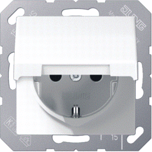 Jung wandcontactdoos (wcd schakelmat.), wit, uitvoering contactdoos CEE 7/3 (type, 2 actieve contacten (rond), 1 eenheid, 1 fasen, aansluitwijze steekklem, met klapdeksel, RAL-nummer 9016