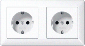 Jung AS500 wandcontactdoos (wcd schakelmat.), wit, uitvoering contactdoos CEE 7/3 (type, 2 actieve contacten (rond), 2 eenheden, 1 modules (bij modulair sys, 1 fasen, aansluitwijze steekklem, RAL-nummer 9016