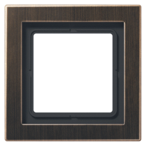 Jung LS RANGE afdekraam schakelmateriaal, metaal, messing, (bxhxd) 96x96x11mm, uitvoering oppervlakte mat, montagerichting horizontaal en verticaal, geschikt voor wandgoot, 1 eenheid, beschermingsgraad (IP) IP44, 1 eenheden horizontaal, RAL-nummer 8014, kwaliteit messing,