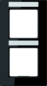 Jung afdekraam schakelmateriaal, kunststof, zwart, (bxhxd) 87x158x10mm, uitvoering oppervlakte glanzend, montagerichting verticaal, geschikt voor wandgoot, tekstveld/beschrijvingsvlak, 2 eenheden, beschermingsgraad (IP) IP44, 1 eenheden horizontaal, RAL-nummer 9005, kwaliteit thermoplast,