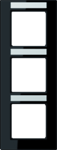 Jung afdekraam schakelmateriaal, kunststof, zwart, (bxhxd) 87x229x10mm, uitvoering oppervlakte glanzend, montagerichting verticaal, geschikt voor wandgoot, tekstveld/beschrijvingsvlak, 3 eenheden, beschermingsgraad (IP) IP44, 1 eenheden horizontaal, RAL-nummer 9005, kwaliteit thermoplast,