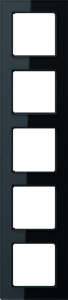 Jung afdekraam schakelmateriaal, kunststof, zwart, (bxhxd) 87x371x10mm, uitvoering oppervlakte glanzend, montagerichting horizontaal en verticaal, geschikt voor wandgoot, 5 eenheden, beschermingsgraad (IP) IP44, 1 eenheden horizontaal, RAL-nummer 9005, kwaliteit thermoplast,