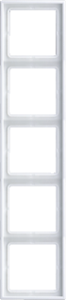 Jung LS990 afdekraam schakelmateriaal, kunststof, wit, (bxhxd) 81x365x11mm, uitvoering oppervlakte glanzend, variant alpine wit, montagerichting horizontaal en verticaal, geschikt voor wandgoot, 5 eenheden, beschermingsgraad (IP) IP44, 1 eenheden horizontaal, RAL-nummer 9016, kwaliteit duroplast,