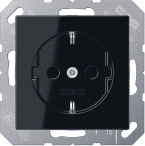 Jung wandcontactdoos (wcd schakelmat.), zwart, uitvoering contactdoos CEE 7/3 (type, 2 actieve contacten (rond), 1 eenheid, 1 fasen, aansluitwijze steekklem, RAL-nummer 9005