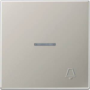Jung bed.element / centr.pl. schakelmat., metaal, roestvaststaal (RVS), uitvoering enkele drukker, gebruik schakelaar/drukker, uitvoering oppervlakte mat, opdruk/indicatie symbool"bel", controlevenster/verlicht, beschermingsgraad (IP) IP44, aftastsymbool / barrièrevrij, halogeenvrij,