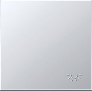 Jung bed.element / centr.pl. schakelmat., metaal, aluminium, uitvoering enkele wip, gebruik schakelaar/drukker, uitvoering oppervlakte mat, opdruk/indicatie symbool"licht", beschermingsgraad (IP) IP44, RAL-nummer 9006, aftastsymbool / barrièrevrij, halogeenvrij, kwaliteit aluminium,