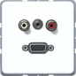 Jung multifunctionele verbindingsdoos, wit, 1 cinch-audio aansluitingen, 3 data-aansluitingen, 1 jack 3,5 mm aansluitingen, 3 moduleslots, 1 VGA aansluitingen, inbouwmontage (stucwerk), RAL-nummer 9010