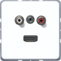 Jung multifunctionele verbindingsdoos, wit, 1 cinch-audio aansluitingen, 3 data-aansluitingen, 1 jack 3,5 mm aansluitingen, 3 moduleslots, inbouwmontage (stucwerk), RAL-nummer 9010