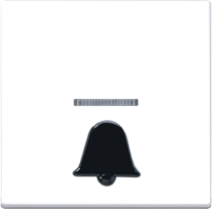 Jung A RANGE bed.element / centr.pl. schakelmat., kunststof, wit, uitvoering enkele wip, gebruik schakelaar/drukker, uitvoering oppervlakte glanzend, opdruk/indicatie symbool"bel", controlevenster/verlicht, beschermingsgraad (IP) IP44, RAL-nummer 9016, aftastsymbool / barrièrevrij, halogeenvrij,