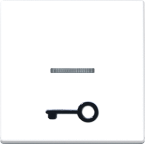 Jung A RANGE bed.element / centr.pl. schakelmat., kunststof, wit, uitvoering enkele wip, gebruik schakelaar/drukker, uitvoering oppervlakte glanzend, opdruk/indicatie symbool"sleutel/deur", controlevenster/verlicht, beschermingsgraad (IP) IP44, RAL-nummer 9016, aftastsymbool / barrièrevrij,