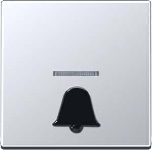 Jung A RANGE bed.element / centr.pl. schakelmat., kunststof, aluminium, uitvoering enkele wip, gebruik schakelaar/drukker, uitvoering oppervlakte mat, opdruk/indicatie symbool"bel", controlevenster/verlicht, beschermingsgraad (IP) IP44, RAL-nummer 9006, aftastsymbool / barrièrevrij, halogeenvrij,