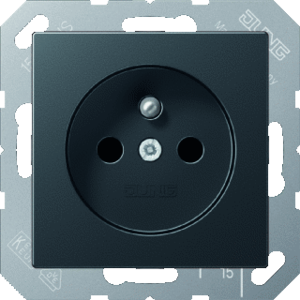 Jung wandcontactdoos (wcd schakelmat.), antraciet, uitvoering aardingspen, 2 actieve contacten (rond), 1 eenheid, 1 fasen, aansluitwijze steekklem, met verhoogde aanraakbeveiliging, RAL-nummer 9005