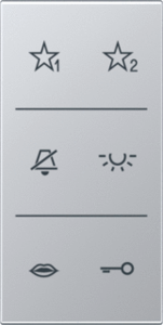 Jung bed.element / centr.pl. schakelmat., kunststof, aluminium, uitvoering overig, gebruik buitenpost, uitvoering oppervlakte mat, opdruk/indicatie diverse symbolen, beschermingsgraad (IP) IP20, RAL-nummer 9006, halogeenvrij, kwaliteit thermoplast, oppervlaktebescherming gelakt