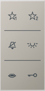 Jung bed.element / centr.pl. schakelmat., kunststof, roestvaststaal (RVS), uitvoering overig, gebruik buitenpost, uitvoering oppervlakte mat, opdruk/indicatie diverse symbolen, beschermingsgraad (IP) IP20, halogeenvrij, kwaliteit thermoplast, oppervlaktebescherming gelakt