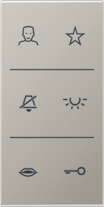 Jung bed.element / centr.pl. schakelmat., kunststof, roestvaststaal (RVS), uitvoering overig, gebruik buitenpost, uitvoering oppervlakte mat, opdruk/indicatie diverse symbolen, beschermingsgraad (IP) IP20, halogeenvrij, kwaliteit thermoplast, oppervlaktebescherming gelakt