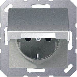 Jung wandcontactdoos (wcd schakelmat.), aluminium, uitvoering contactdoos CEE 7/3 (type, 2 actieve contacten (rond), 1 eenheid, 2 modules (bij modulair sys, 1 fasen, aansluitwijze steekklem, met klapdeksel