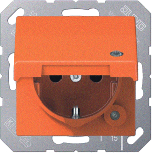 Jung wandcontactdoos (wcd schakelmat.), oranje, uitvoering contactdoos CEE 7/3 (type, 2 actieve contacten (rond), 1 eenheid, 1 fasen, aansluitwijze steekklem, met klapdeksel, met verhoogde aanraakbeveiliging, RAL-nummer 2004, met functieverlichting