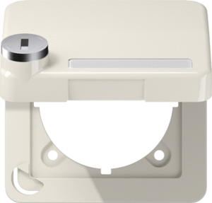 Jung afdekraam schakelmateriaal, kunststof, wit, (bxhxd) 67x67x15mm, uitvoering oppervlakte glanzend, montagerichting horizontaal en verticaal, geschikt voor wandgoot, tekstveld/beschrijvingsvlak, 1 eenheid, beschermingsgraad (IP) IP44, met klapdeksel, 1 eenheden horizontaal, RAL-nummer 1013,
