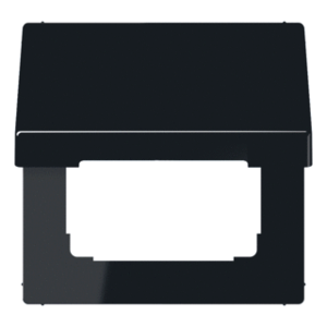 Jung afdekraam schakelmateriaal, kunststof, zwart, (bxhxd) 70x70x18mm, uitvoering oppervlakte glanzend, montagerichting horizontaal en verticaal, geschikt voor wandgoot, 1 eenheid, beschermingsgraad (IP) IP44, met klapdeksel, 1 eenheden horizontaal, RAL-nummer 9005, kwaliteit thermoplast,