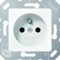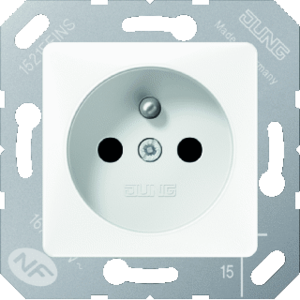 Jung wandcontactdoos (wcd schakelmat.), wit, uitvoering aardingspen, 2 actieve contacten (rond), 1 eenheid, 1 fasen, aansluitwijze steekklem, met verhoogde aanraakbeveiliging, RAL-nummer 9016