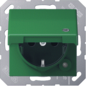 Jung wandcontactdoos (wcd schakelmat.), groen, uitvoering contactdoos CEE 7/3 (type, 2 actieve contacten (rond), 1 eenheid, 1 fasen, aansluitwijze steekklem, met klapdeksel, met verhoogde aanraakbeveiliging, RAL-nummer 6029, met functieverlichting