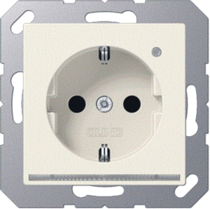 Jung wandcontactdoos (wcd schakelmat.), crème-wit/elektrowit, uitvoering contactdoos CEE 7/3 (type, 2 actieve contacten (rond), 1 eenheid, 1 fasen, aansluitwijze steekklem, met verhoogde aanraakbeveiliging, RAL-nummer 1013, met oriëntatieverlichting