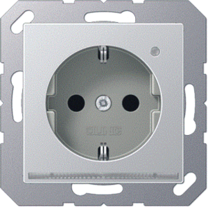 Jung wandcontactdoos (wcd schakelmat.), aluminium, uitvoering contactdoos CEE 7/3 (type, 2 actieve contacten (rond), 1 eenheid, 1 fasen, aansluitwijze steekklem, met verhoogde aanraakbeveiliging, met oriƫntatieverlichting