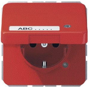 Jung wandcontactdoos (wcd schakelmat.), rood, uitvoering contactdoos CEE 7/3 (type, 2 actieve contacten (rond), 1 eenheid, 1 fasen, aansluitwijze steekklem, met klapdeksel, met verhoogde aanraakbeveiliging, tekstveld/beschrijvingsvlak, RAL-nummer 3003, met functieverlichting