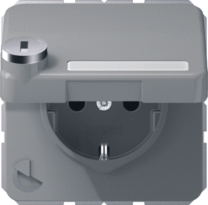 Jung wandcontactdoos (wcd schakelmat.), grijs, uitvoering contactdoos CEE 7/3 (type, 2 actieve contacten (rond), 1 eenheid, 1 fasen, aansluitwijze steekklem, met klapdeksel, met verhoogde aanraakbeveiliging, RAL-nummer 7038, afsluitbaar