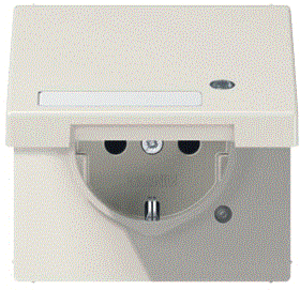 Jung wandcontactdoos (wcd schakelmat.), crème-wit/elektrowit, uitvoering contactdoos CEE 7/3 (type, 2 actieve contacten (rond), 1 eenheid, 1 fasen, aansluitwijze steekklem, met klapdeksel, met verhoogde aanraakbeveiliging, tekstveld/beschrijvingsvlak, RAL-nummer 1013, met functieverlichting