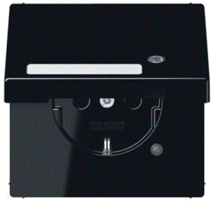 Jung wandcontactdoos (wcd schakelmat.), zwart, uitvoering contactdoos CEE 7/3 (type, 2 actieve contacten (rond), 1 eenheid, 1 fasen, aansluitwijze steekklem, met klapdeksel, met verhoogde aanraakbeveiliging, tekstveld/beschrijvingsvlak, RAL-nummer 9005, met functieverlichting