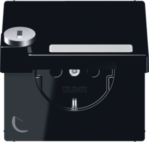 Jung wandcontactdoos (wcd schakelmat.), zwart, uitvoering contactdoos CEE 7/3 (type, 2 actieve contacten (rond), 1 eenheid, 1 fasen, aansluitwijze steekklem, met klapdeksel, met verhoogde aanraakbeveiliging, RAL-nummer 9005, afsluitbaar