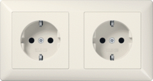 Jung wandcontactdoos (wcd schakelmat.), crème-wit/elektrowit, uitvoering contactdoos CEE 7/3 (type, 2 actieve contacten (rond), 2 eenheden, 1 fasen, aansluitwijze steekklem, RAL-nummer 1013