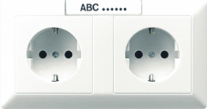 Jung wandcontactdoos (wcd schakelmat.), crème-wit/elektrowit, uitvoering contactdoos CEE 7/3 (type, 2 actieve contacten (rond), 2 eenheden, 1 fasen, aansluitwijze steekklem, tekstveld/beschrijvingsvlak, RAL-nummer 1013