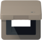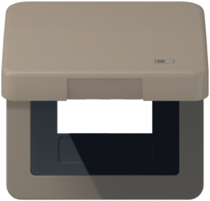 Jung afdekraam schakelmateriaal, kunststof, bruin, (bxhxd) 67x67x15mm, uitvoering oppervlakte glanzend, montagerichting horizontaal en verticaal, geschikt voor wandgoot, 1 eenheid, beschermingsgraad (IP) IP44, met klapdeksel, 1 eenheden horizontaal, RAL-nummer 8022, kwaliteit thermoplast,