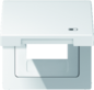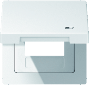 Jung afdekraam schakelmateriaal, kunststof, wit, (bxhxd) 70x70x18mm, uitvoering oppervlakte glanzend, montagerichting horizontaal en verticaal, geschikt voor wandgoot, 1 eenheid, beschermingsgraad (IP) IP44, met klapdeksel, 1 eenheden horizontaal, RAL-nummer 9016, kwaliteit thermoplast,