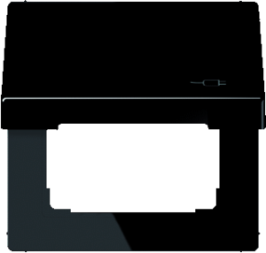 Jung afdekraam schakelmateriaal, kunststof, zwart, (bxhxd) 70x70x18mm, uitvoering oppervlakte glanzend, montagerichting horizontaal en verticaal, geschikt voor wandgoot, 1 eenheid, beschermingsgraad (IP) IP44, met klapdeksel, 1 eenheden horizontaal, RAL-nummer 9005, kwaliteit thermoplast,