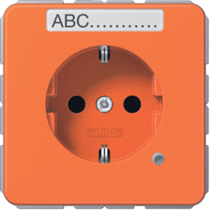 Jung wandcontactdoos (wcd schakelmat.), oranje, uitvoering contactdoos CEE 7/3 (type, 2 actieve contacten (rond), 1 eenheid, 1 fasen, aansluitwijze steekklem, met verhoogde aanraakbeveiliging, RAL-nummer 2004, met functieverlichting